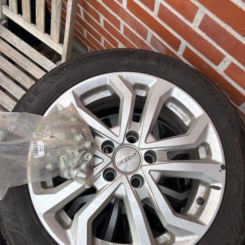 Det er 4 x sommerdæk 215/60-R17 på stålfælge m/ originale Renault hjulkapsler.