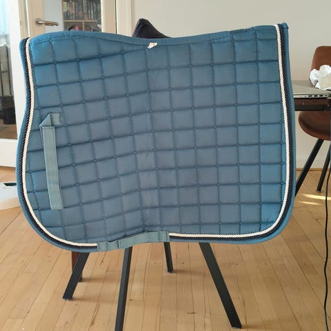 Eskadron underlag til sadel i mørke blå farve. Underlaget er quiltet og designet til at give komfort og beskyttelse til hesten under ridning. Str pony (ca 16”)