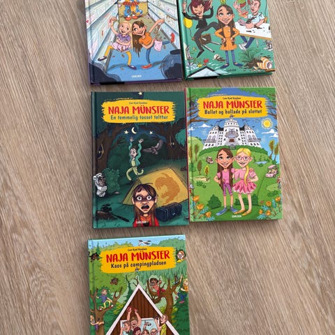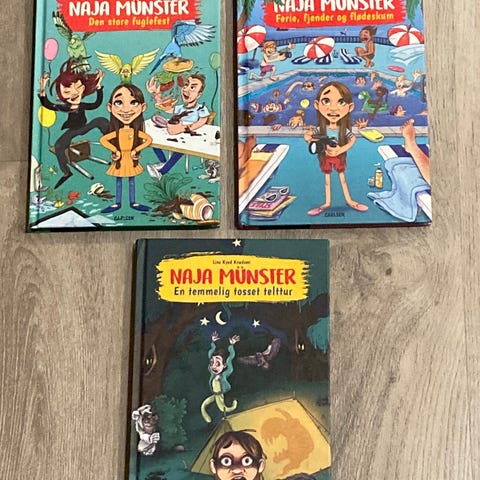 Naja Münster Børnebøger Sæt bestående af flere titler: "Naja Münsters vennebog", "Den store fuglefest", og "En temmelig tosset teltur".