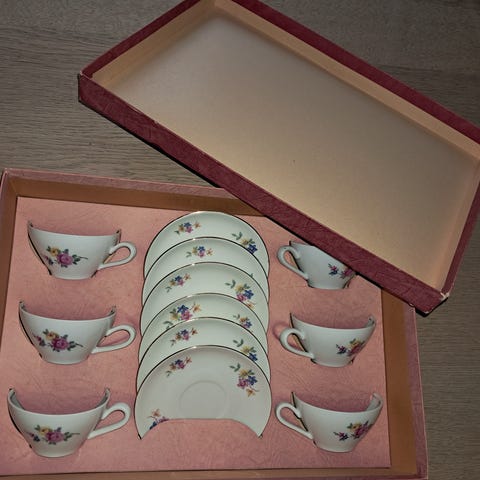Fint lille Retro dukke kaffestel i miniformat🤍