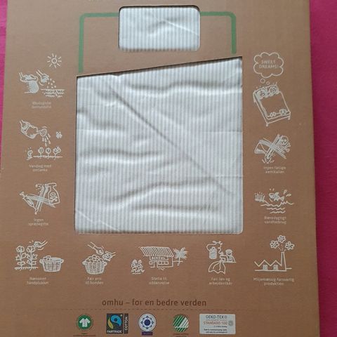 Lækkert sengetøj i ministrib, olivengrønt og sand sælges. Mindst 349,- pr. sæt i butikkerne