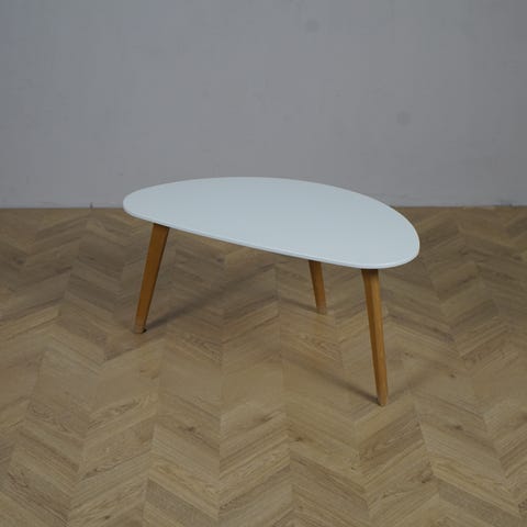 Højt arbejds/cafe bord i hvidglans brugt som lille arbejdsbord til laptop