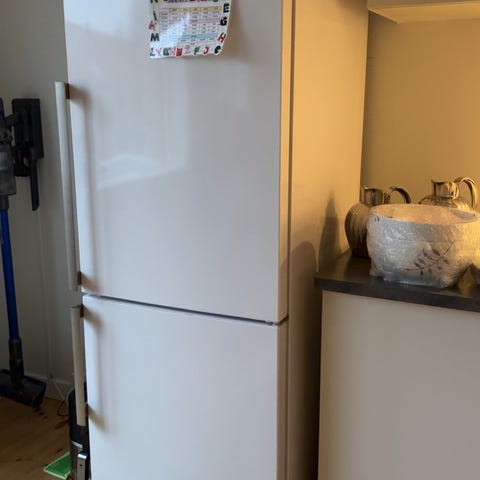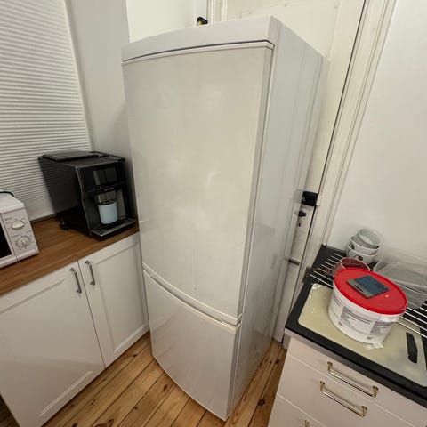 Køleskabet fungerer upåklageligt. Fryseren fryser men listen skal skiftes ud for at undgå rim inde i fryseren og en skuffe er gået i stykker. Oprindeligt brugt som indbygget køleskab.