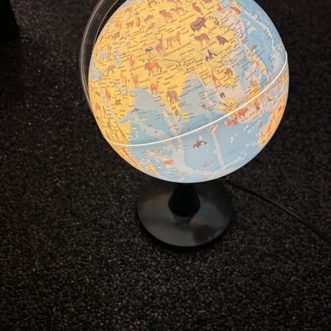 Rigtig fin globus med verdens dyr. Afbryderkontakt på ledningen.