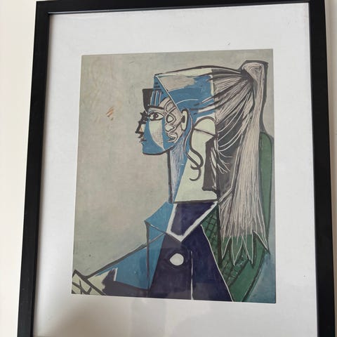 Dora Maar, selv maler og fotograf, var sammen med Picasso fra midt i 1930e til 1943. Originalen til dette værk fra 1937 er et af flere portrætter som Picasso malede af hende.