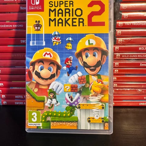 Nintendo Switch Super Mario Maker 2 spil. Spillet indeholder funktioner til at skabe og spille brugerdefinerede Super Mario baner. Passer til Nintendo Switch konsol.