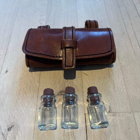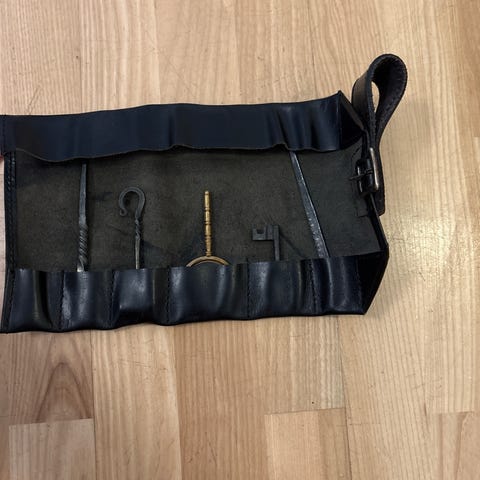 Tre kasteknive i egen holder. Pænt slidt, se billeder.