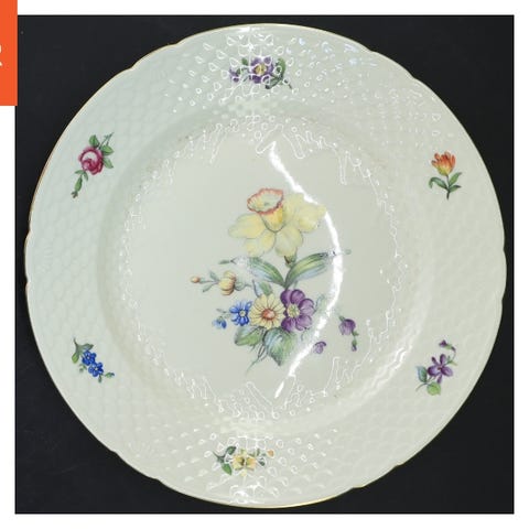 Bing & Grøndahl Saksisk Blomst, Hvid dyb tallerken No 22/322. Måler 24 cm