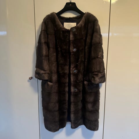 Mink, syet hos en af Danmarks mest kendte pels-firmaer. Kun lettere brugt, fremstår som ny, kun brugt indendørs og ud/ind i bil. Nypris 45.000. Man er velkommen til at komme og prøve pelsen, og se den i øvrigt.