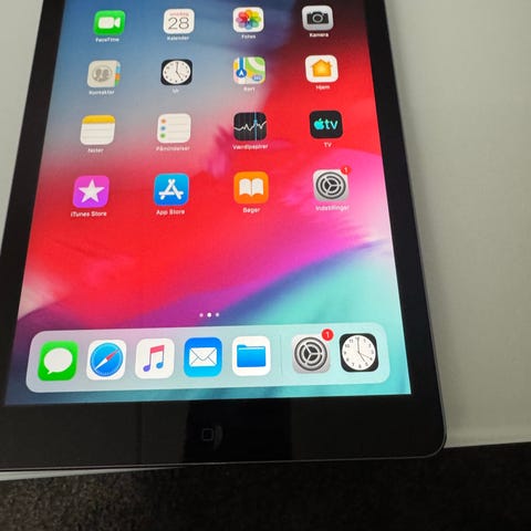 iPad’en fremstår pæn af alderen, med almindelige brugsspor. Æsken har lidt slid.