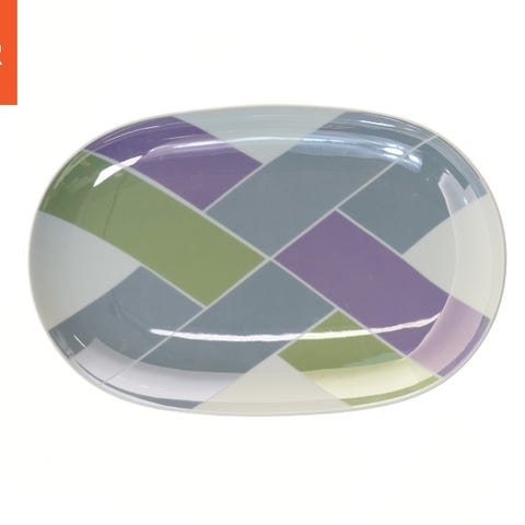 Royal Copenhagen. Et oktagonalt porcelænsfad med bladmotiv på overfladen. Designet indeholder nuancer af brun, blå og beige farver, med glaseret finish. Fadet måler 20 cm i diameter og er ideelt til servering eller som dekorativt element.