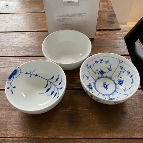 OBS: Der er ikke brudgaranti på skålene, i og med vi har fået skålene i firmagave, dermed er der ikke tale om privatkøb, hvilket er en af betingelserne for Royal Copenhagens brudgaranti.