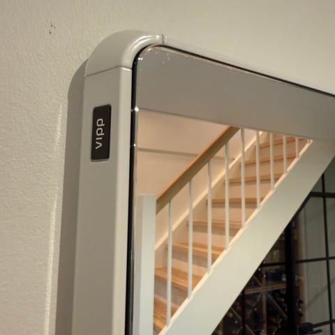 Vipp 913 spejl, 187x50 cm, hvid. Rektangulært design, velegnet til vægmontering. Kan bruges i forskellige rum som soveværelse, gang eller badeværelse. Størrelse 187 cm x 50 cm x 3.1 cm (B x H x D)