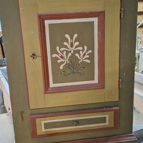 Almindelig patina men hvis det får en gang maling så kan det blive et super fint skab til stuen eller til entreen.