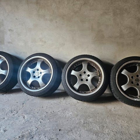 Fælgene trænger til maling/renovering, og 2 af fælgene skal have nye dæk på.