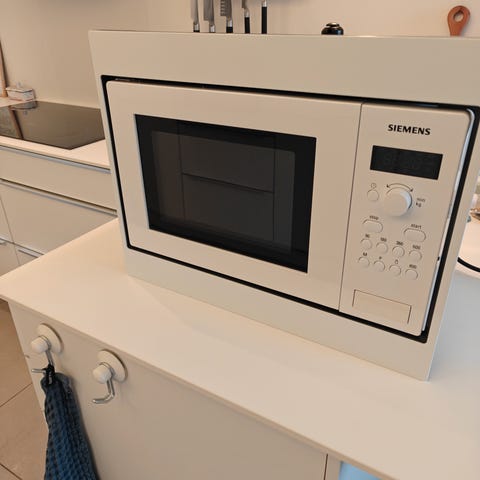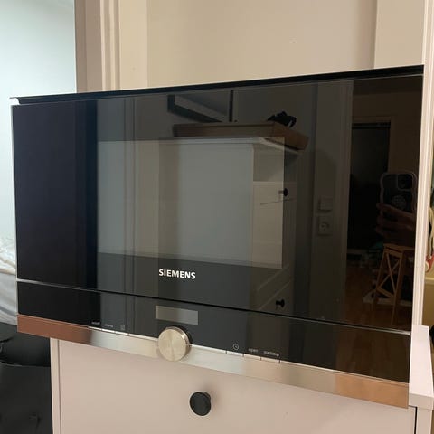 Siemens mikrobølgeovn i sort farve. En køkkenmaskine designet til opvarmning og tilberedning af mad ved hjælp af mikrobølgeteknologi.