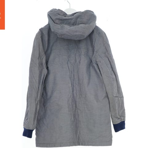næsten ny militær grøn Forårsjakke med blomster i hætten, lynlås i 'guld'. Jakken har to store lommer foran med knaplukning og elastiske manchetter ved ærmerne. Der er en elastik i taljen for bedre pasform.