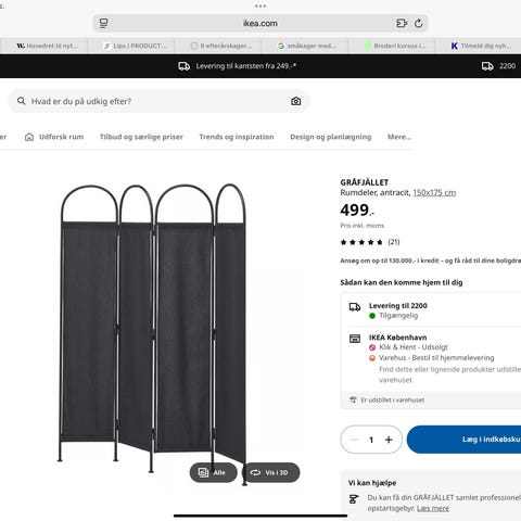 IKEA rumdeler i grå filt. Fritstående og stabil. God til opdeling af rum, kontor eller hjemmearbejdsplads. Fremstår i pæn stand.