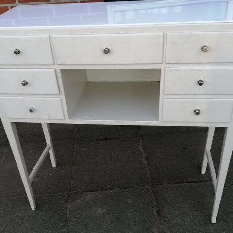 Næsten ubrugt komodde med tre skuffer, øverste skuffe med glas