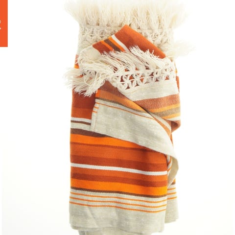 31x50 cm dekorativt stof i lyse farver med et mønster på begge sider. Stoffet kan anvendes til indretning, som en let dug eller pyntestykke.