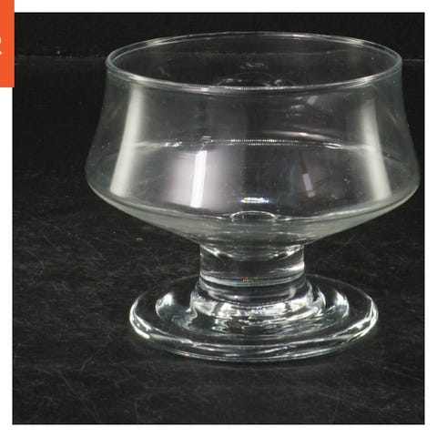 Sættet indeholder fire dessertskåle lavet af klart glas. Hver skål har en diameter på 10 cm og står på en rund fod. Designet er enkelt og funktionelt, gør dem ideelle til servering af desserter eller snacks. Skålene fremstår gennemsigtige uden synlige skrammer.