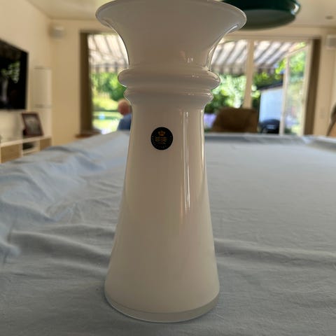 Hvid glasvase med låg fra Holmegaard (str. 17 cm)