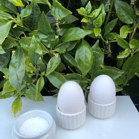 To æggebægre fra Royal Copenhagen (Alumnia fajance) Blåkant (3050) med en diameter på 4,5 cm (696).