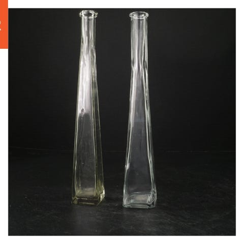Et sæt bestående af to glasvaser. De har en rund og mønstret form, som giver et elegant og stilfuldt udseende. Vaserne er gennemsigtige og har en højde på 12 cm.