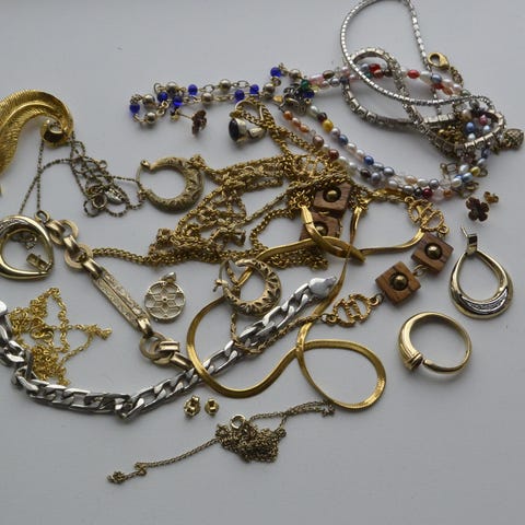 Dette sæt indeholder forskellige typer af smykker, heriblandt armbånd og halskæder. Smykkerne kommer i forskellige stilarter og farver, herunder sort, sølv, grøn og orange. Materialerne ser ud til at variere og inkluderer metal, perler og flettede tråde.