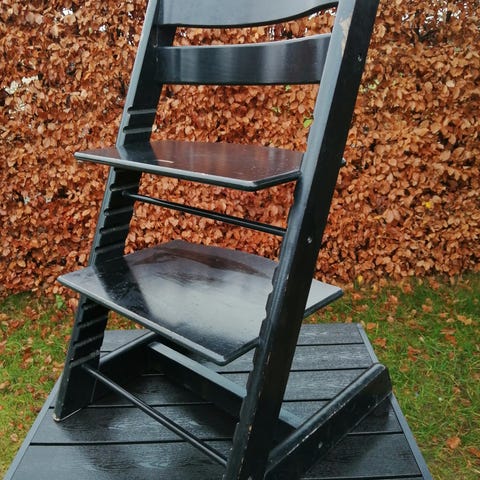 Er malet i grå. Kan bruges men vil også have godt have en lille slibning og lidt nyt maling :-)