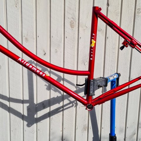 2 stykker Kildemoes stel med styr, pedaler og kæde.