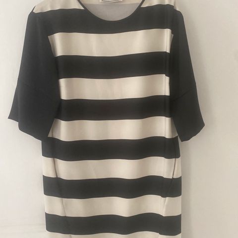A50. Elegant kjole med en cremefarvet top og en sort blonde nederdel. Kjolen har en diskret knaplukning i ryggen. Stof se billeder.