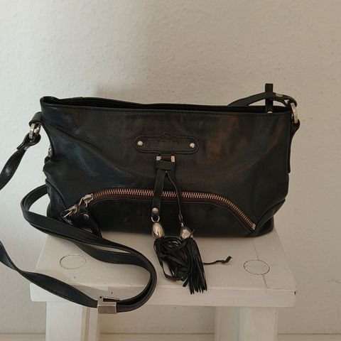 Super flot sort lille skuldertaske fra Adax i den meget fine ende af kategorien “god men brugt”, da jeg har brugt den sparsomt og passet godt på den. Skindet er af en skøn let vintage-behandlet kvalitet og med et foer i særdeles fin stand med diverse lommer og rum med god plads til kort, kosmetikpung og mobiltelefon mv. se mål på billeder. Justerbar skulderrem. Fra røg- og dyrefrit hjem. Prisen er fast på denne taske. Kan evt sendes fragt 45 kr. til pakkeshop.