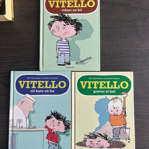 Vitello børnebøger sæt bestående af 6 bøger med forskellige titler. Bøgerne er på dansk og egner sig til børn. Sættet indeholder bøger med farverige omslag og forskellige historier, der kan bruges til oplæsning og børnelæsning.