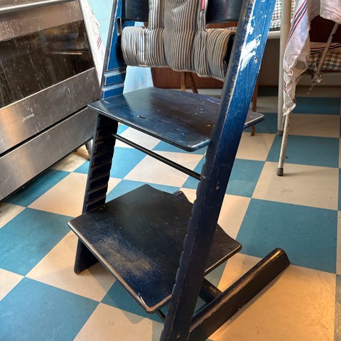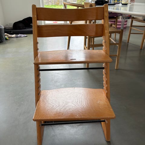 Grøn Trip Trap stol. Brugt af ét barn og har klistermærker på. Er brugt men i god stand. Kom med et bud.