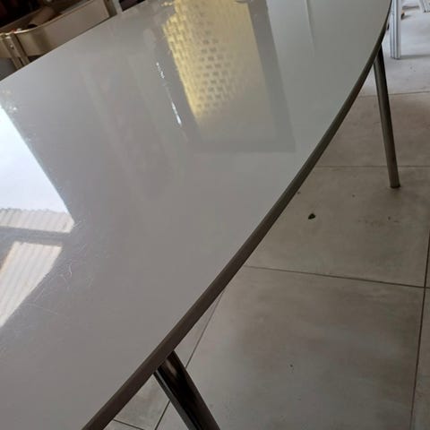 Klassisk elipse spisebord med anthrazit bordplade og ben i chrome. Tillægsplade 48 cm.