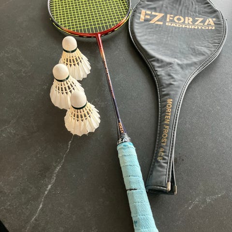 2 stk Forza FZ 300, den ene er testet af i en lejlighed i 5-10 min, den anden uåbnet. Et boldrør med 12 stk fjerbolde, også uåbnet.