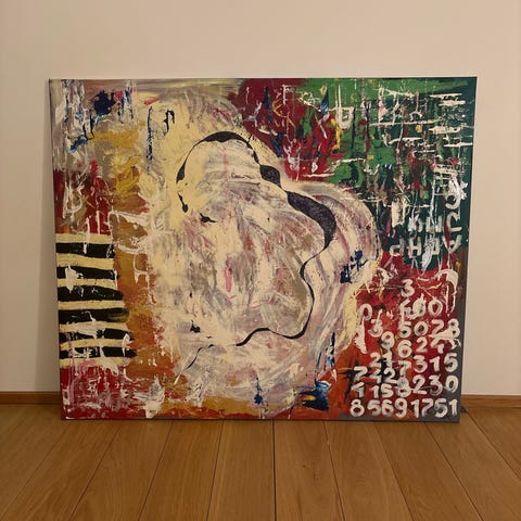 Maleri på lærred i rød, brun og beige farver i str.45x120