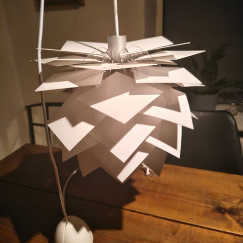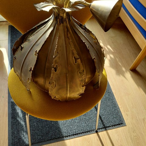 Stor og flot pendel i oregon pine finer. Standen er rigtig flot og uden skader. Diameter godt 35 cm. Leveres med fatning og evt ledning monteret. Kan sendes mod at køber betaler forud