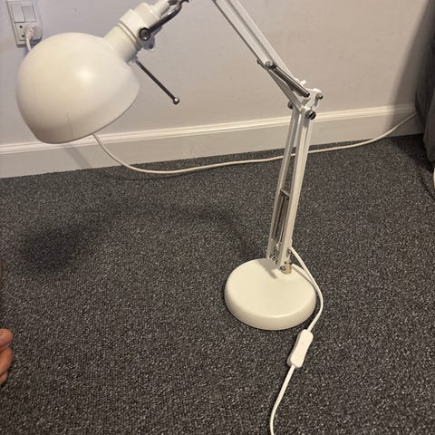 Rigtig fin slrivebordslampe i hvid fra IKEA, næsten som ny - kun et lille bitte brugsmærker