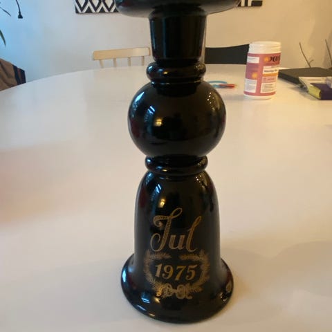 Holmegaard Jul 1976 Dekorationslysestage i grønt glas. Lysestagen er designet til julebrug og har en dekorativ tekst med årstallet 1976. Materialet er glas, og den er velegnet til brug som juledekoration.