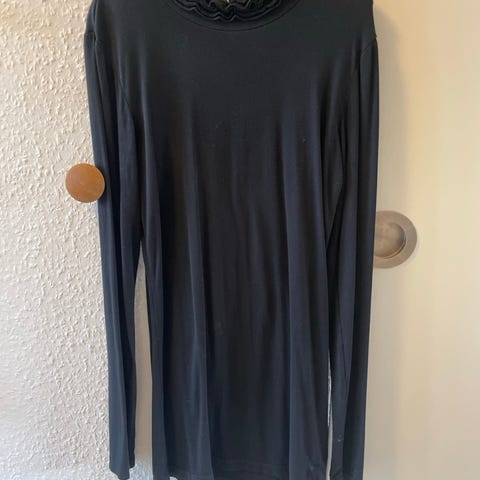 Helt ny super fin sort tynd langærmet bluse fra D-XEL med flot mønster str. 152. 60% bomuld /40% polyester.