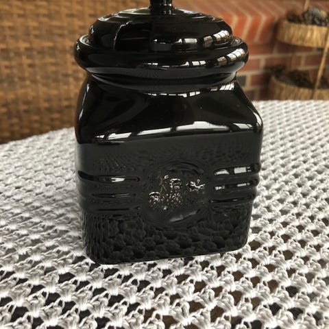 Højde uden låg 7,5 cm. Bredde 6 cm. Dybde 6 cm