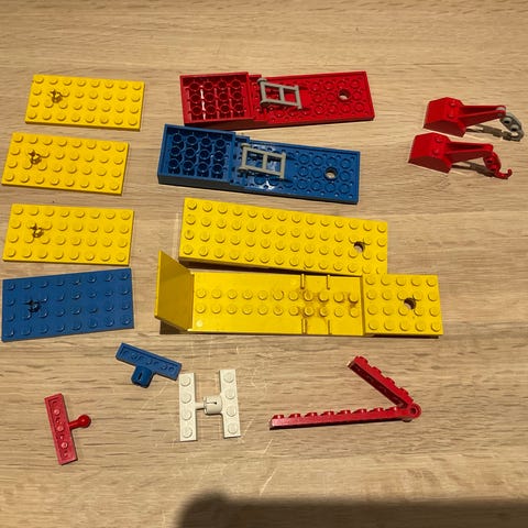 Mange Lego klodser , elefant , 2 mennesker , kørertøj og 2 anhænger