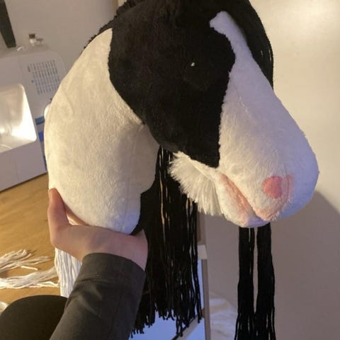 Denne meget smukke og unikke grå pony hobby horse/kæphest, er nu til salg (Helt ny). Hesten har en flot markeret hvid blis, og en unik lille hvid plet på den ene side, med sorte skygger omkring mulen. - Helt perfekt som julegave! Hvis du vil være sikker på at den når frem inden den 24 Dec, så råder jeg til at købe inden d. 19. Prisen er fast.