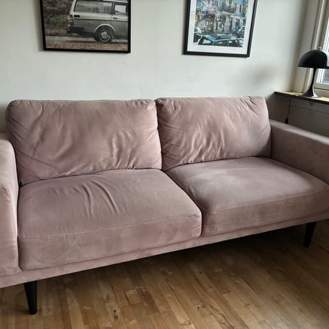 Sofaen har et enkelt og stilrent udtryk, faste armlæn og solide ben. Der medfølger også en aftagelig nakkestøtte, som gør den ekstra behagelig, hvis du vil slappe af foran fjernsynet.