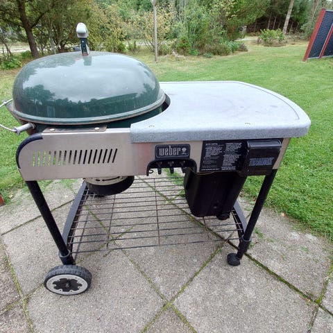 Incl. roteriserie, termometer i låg, lågholder, dækken, salt og peber sæt samt en pose briketter af den gode slags.