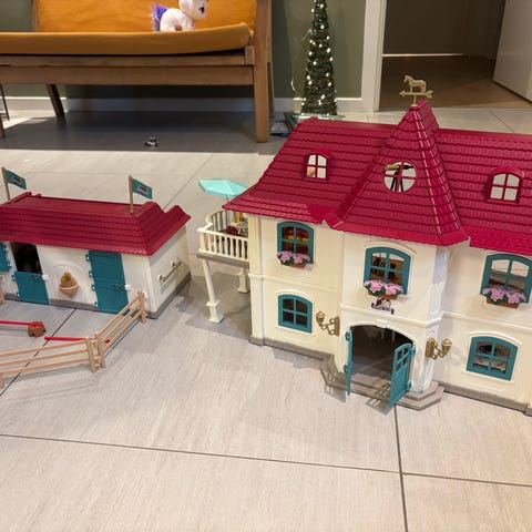 Schleich legeplads til figurer bestående af flere sammenkoblede moduler i forskellige farver og med forskellige funktioner. Legepladsen er lavet af plast og er designet til børn til brug sammen med Schleich figurer.