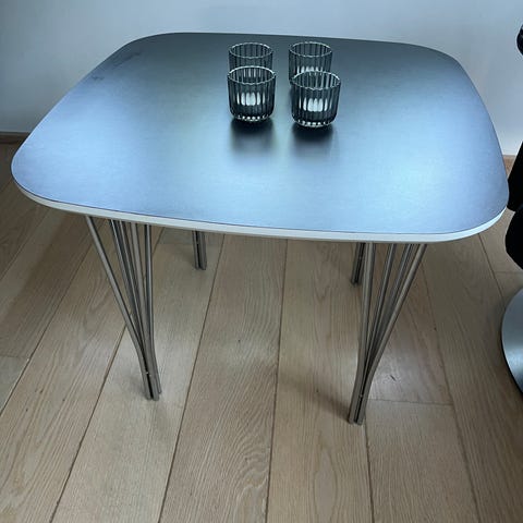 Klassisk moderne elipse sofabord med anthrazit bordplane og chrome ben. Lille fejl i bordplade.