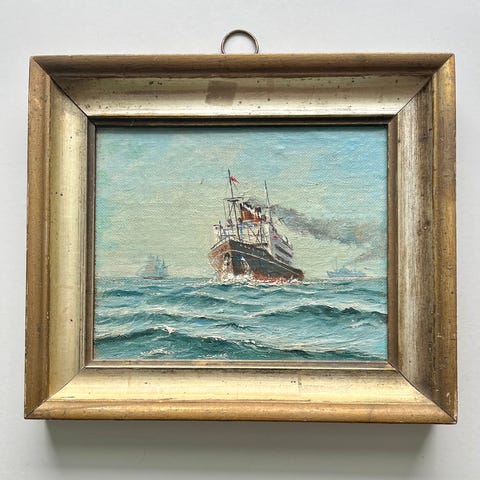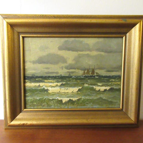 Og lidt andet maritimt Alfred Brændgaard Andersen motiv fra en havn med lastdamper mål 48 X 37 cm med ramme god stand kr 2000